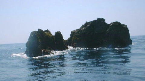 左右の釣り場、どちらも足場は狭く石鯛は2人づつ